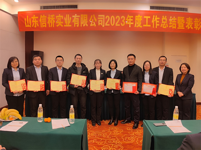 2024年1月8日,山東信橋?qū)崢I(yè)有限公司2023年度總結(jié)暨表彰大會(huì)在泰安帝苑酒店隆重舉行。董事長(zhǎng)徐立波、總經(jīng)理徐宏以及辦公室人員50余人參加了會(huì)議。會(huì)議由副總經(jīng)理石振偉主持。