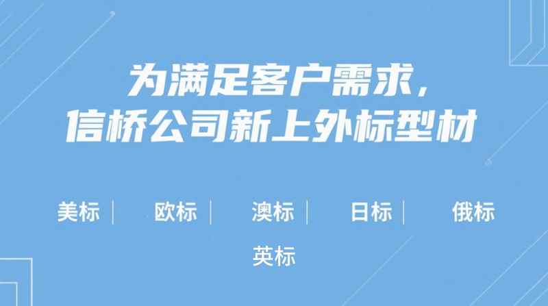 為提供更好的服務,信橋公司新上外標型材:美標、歐標、澳標、英標、日標、俄標。
